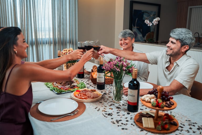 A narrativa visual da campanha aborda momentos entre a família valorizando a união e a tradição da semana santa. Os produtos Vale das Videiras são inseridos de forma orgânica no contexto da mesa e da convivência familiar, reforçando valores como cuidado, qualidade e tradição. A presença da marca São Braz acontece de maneira institucional, respeitando o significado religioso da data e fortalecendo seu posicionamento.